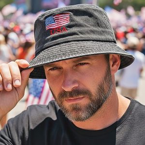 Men’s Cotton Bucket Hat, USA Flag Embroidery, Available in Multiple Colors, Perfect for Independence Day, US 250th Anniversary and Casual Everyday Wear #19739082
