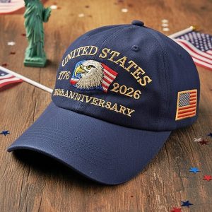 Men’s Adjustable Cotton Cap with Embroidered American Flag, Multiple Colors, Ideal for Independence Day and 250th Anniversary Celebrations #15152541