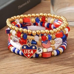 Women’s Patriotic Beaded Bracelet Set – Red White and Blue USA Charm Elastic Stretch Bangles – 4th of July Independence Day Jewelry for Holiday Outfits & Party Wear #18107173
