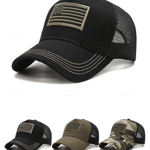 Men’s American Flag Trucker Hat – Embroidered USA Mesh Cap for Independence Day & US 250th Anniversary – Breathable Polyester Patriotic Baseball Hat in Multiple Colors – Casual Outdoor Summer Cap #14274858