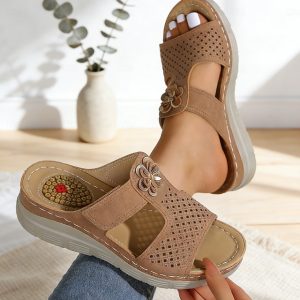 Women’s Brown Floral Orthopedic Slide Sandals – Breathable Cushioned Comfort Shoes for Daily Wear, Home, Travel & Long Walking #18000453