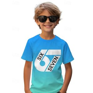 Unisex Boys’ 3D Graphic Color Gradient Funny Slang 67 T shirt Tee Short Sleeve 3D Print Summer Spring Sports Fashion Streetwear Kids 4-12 Years Crew Neck Outdoor Casual Daily Regular Fit #13810787