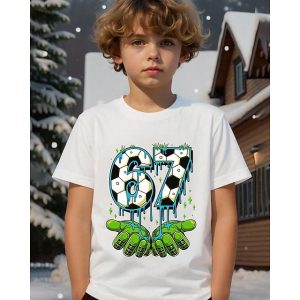 Cotton Kids Boys’ Black White Graphic Football Funny Slang 67 T shirt Blouse Crew Neck Short Sleeve Outdoor Dailywear Fashion Streetwear Designer Printing Summer #14719272