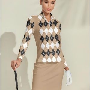 Women’s Golf Polo Shirt Khaki Long Sleeve Top Ladies Golf Attire Clothes Outfits Wear Apparel #12039724