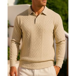 Men’s Jacquard Knit Shirt Casual Polo Shirts Jacquard Long Sleeve Top Athleisure Fall Solid Colored Fashion Outdoor Travel Sports Sportswear Activewear Black Blue Khaki #16012053