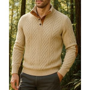 Men’s Hiking top Henley Sweatshirt Long Sleeve Stand Collar Top Outdoor Thermal Warm Winter Polyester Black White Green Workout Traveling Running #17354641