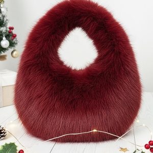 Women’s Faux Fur Shoulder Bag, Soft Plush Material, Chic Hobo Style for Christmas Parties, Available in Multiple Colors #14944131