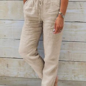 Women’s Cotton Linen Pants Chinos Pants Trousers Basic Casual Long High Waist Plain Pocket Elastic Drawstring Design High Cut Breathability Soft Micro-elastic Street Daily Wear Black White Green Khaki #14841129