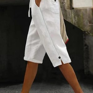 Women’s Cotton Blend Capri Pants Slacks Casual Calf-Length Natural Plain Pocket Elastic Drawstring Design Comfy Outdoor Outdoor Going out Orange red White Pink Blue Summer Regular Fit #11453076