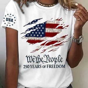 Independence Day American 250th Anniversary Patriotic Shirt Women’s T Shirt Graphic Flag Letter Vintage Fashion Stylish Short Sleeve Crew Neck Daily Weekend Print Blue Black White Red Summer Spring #13576576
