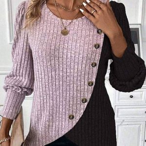 Women’s Blouse Patchwork Buttons Geometric Color Block Tropical Stylish Casual Long Sleeve Crew Neck Regular Tops Daily Pink Sky Blue Gray Spring Fall Winter #13113359