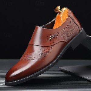 Men’s Brown Faux Leather Slip-On Dress Shoes, Elegant Business Casual Shoes for Office, Weddings and Formal Occasions #16511747