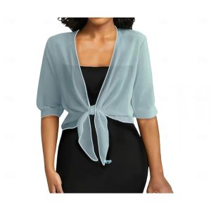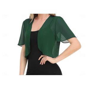 Women’s Wrap Bolero Pure Basic Sun Protection Half Sleeve Chiffon Wedding Guest Wraps With Pure Color For Wedding All Seasons #6428209