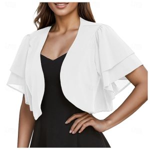 Women’s Wrap Elegant Sun Protection Short Sleeve Chiffon Wedding Wraps With Pure Color For Wedding Summer #17907120