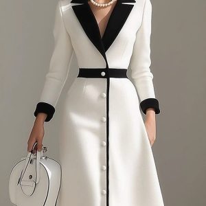 Women’s Midi Dress Sweater Dress Sheath Dress Shift Dress Party Formal Semi Formal Formal Christmas Outdoor Loose Fit Plain Long Sleeve Lapel Black Yellow Red Brown Spring Fall Winter #14981569