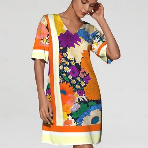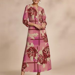Floral Geometric Print Maxi Dress Casual Vacation #12921255
