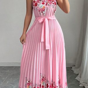 Women’s Maxi Dress A Line Dress Halter Dress Vacation Casual Outdoor Going out Regular Fit Floral Graphic Sleeveless Halter Neck Blue Pink Purple Green Summer Spring #10328326