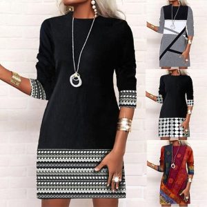 Women’s Mini Dress Sweatshirt Dress Casual Dress Vintage Vacation Office Daily Regular Fit Geometric Color Block Long Sleeve Crew Neck Black White Wine Gray Spring Fall #12584418