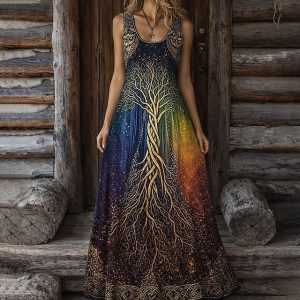 Women’s Midi Dress Boho Casual Dress Swing Dress Summer Dress Dress Vintage Beach Regular Fit Graphic Color Gradient Sleeveless Crew Neck Blue Green Summer Spring #11485853