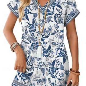 Women’s Mini Dress Casual Dress Floral Dress Print Dress Fashion Modern Outdoor Vacation Going out Regular Fit Floral Short Sleeve V Neck Blue Light Brown Brown Khaki Summer Spring #11614892