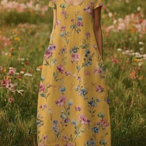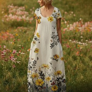 Women’s Maxi long Dress Casual Dress Boho Dress Vintage Daily Outdoor Beach Loose Fit Floral Short Sleeve U Neck Yellow Summer Spring #12239899