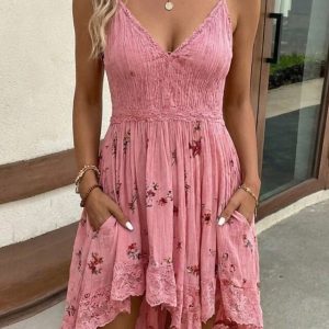 Women’s Midi Dress Casual Dress Boho Dress Vintage Fashion Daily Outdoor Vacation Regular Fit Floral Long Sleeve V Neck Pink Summer Spring Fall #19181709