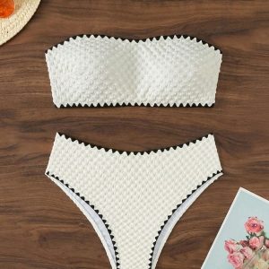 Women’s Swimwear Bikini 2 Piece Cheeky Swimsuit Slim Backless Vacation Beach Wear Solid Color Strapless Sleeveless Bathing Suits #14720057