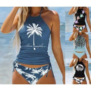 Women’s Standard Regular Rash Guard Floral Print Swimsuit Tankini Swimsuits Floral Tropical Color-blocking 2 Piece Removable Pad Boyleg UV Sun Protection UPF50+ Elastic Sleeveless Surfing Canoeing #15461294