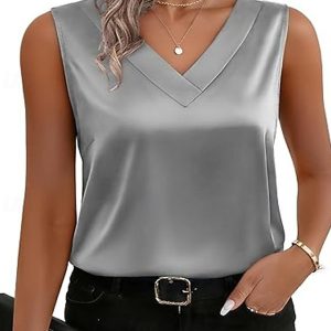 Women’s Elegant Satin Top T Shirt Silky Tops Solid Color Elegant Vintage Fashion Sleeveless V Neck Regular Tops Daily Going out Weekend Patchwork Blue Silver White Red Purple Summer Spring #15827880