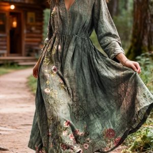 Women’s Maxi Dress Sundress Shift Dress A Line Dress Summer Dress Vacation Casual Boho Daily Beach Holiday Loose Fit Floral Graphic 3/4 Length Sleeve Crew Neck Green Summer Spring #15231182