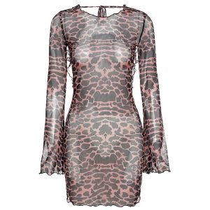 Women’s Mini Dress Sheath Dress Sexy Dress Sundress Hot Sexy Dress Vacation Club Holiday Slim Leopard Long Sleeve Crew Neck Brown Summer Spring #8297573