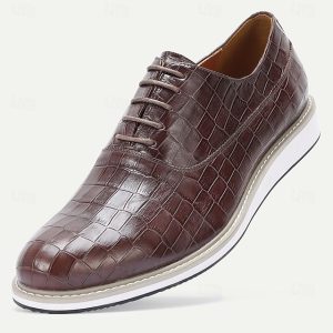 Men’s Brown Crocodile Print Leather Shoes – Stylish Lace-Up Design with Premium Cowhide, Ideal for Weddings, Parties and Formal Occasions #15979732