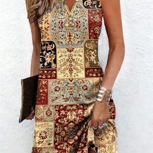 Women’s Midi Dress T Shirt Dress Tee Dress Sundress A Line Dress Summer Dress Vacation Casual Daily Holiday Going out Regular Fit Graphic Tribal Short Sleeve Crew Neck Blue Yellow Purple Summer Spring #14473945