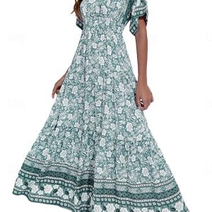 Women’s Maxi Dress A Line Dress Vacation Casual Boho Outdoor Beach Going out Loose Fit Floral Graphic Half Sleeve V Neck Blue Pink Orange Green Summer Spring #9966365
