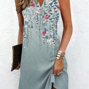 Women’s Mini Dress Sundress Shift Dress Summer Dress Off The Shoulder Dress Vacation Casual Daily Holiday Going out Regular Fit Floral Graphic Sleeveless V Neck Blue White Green Summer Spring #16651653