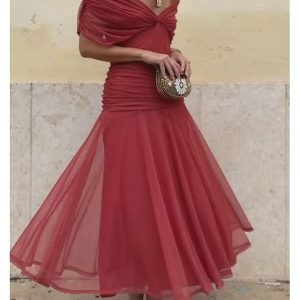 Women’s Midi Dress Sheath Dress Vacation Birthday Beach Party Going out Regular Fit Solid Color Short Sleeve V Neck dark brown Deep Green Navy Red Summer Spring #17667573