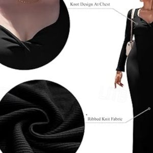 Women’s casual long sleeve twist square neck bodycon ribbed long dress #15532610