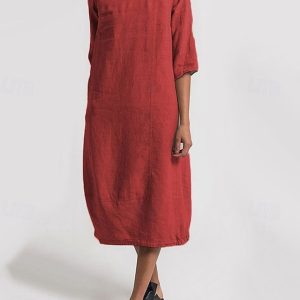 Women’s Midi Dress Sundress Shift Dress Vacation Casual Boho Daily Beach Holiday Loose Fit Plain 3/4 Length Sleeve Crew Neck Navy Black Red Light Grey Summer Spring #16639313