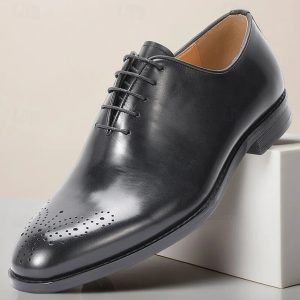 Men’s Black Leather Oxford Shoes – Premium Leather with Perforated Detailing, Perfect for Formal Events, Business Meetings and Office Wear #16922321