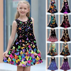 Girls’ 3D Graphic Butterfly Dress Sleeveless 3D Print Summer Spring Vacation Sports & Outdoor Daily Cute Casual Sweet Kids 3-12 Years Casual Dress A Line Dress Tank Dress Above Knee Regular Fit #9570706