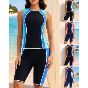 Women’s Bathing Suit Tankini 2 Pieces Patchwork Knee-Length Leg Quick Dry Elastic Sleeveless Swimwear Swimsuit Surfing Diving Beach Summer #18899134