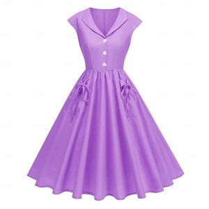 1950s Hepburn Retro Vintage Midi A-Line Dress Swing Dress Flare Dress Short Sleeves A-Line Fancy Dress Women’s Carnival Valentine’s Day Masquerade Vacation Dailywear Bachelorette Party Adults Dress #14624877